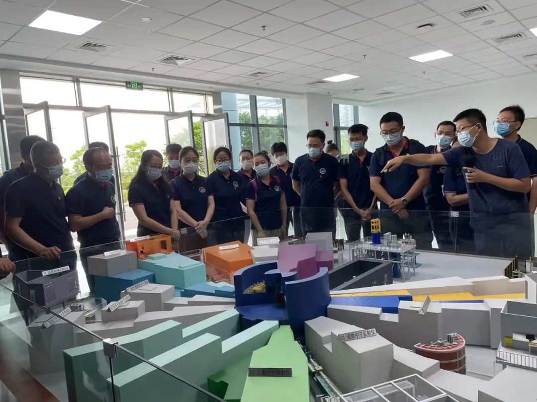 大家首先参观学习的是位于东莞市松山湖科学城的中国散裂中子源(以下简称CSNS),一睹“国之重器”的风采。散裂中子源科学中心科技办杨振副主任全程陪同讲解。教工党员一行人观看了CSNS宣传片、参观CSNS工程沙盘和直线隧道,听取杨振副主任对散裂中子源立项、建设历程、各个项目的工作原理、应用场景与前景的详细讲解。这是我国第一台、世界第四台散裂中子源装置,被喻为“超级显微镜”,是研究中子特性、探测物质微观结构和如何运动的科研装置,可带动物理学、化学、生命科学、材料科学、纳米科学、医药、国防科研和新型核能开发等学科发展。教工党员们现场专门参观了我校在中国散裂中子源上布局建设的国内首台具有中高能磁激发谱和声子谱探测能力的材料动力学性质研究谱仪,据了解将在今年投入使用。