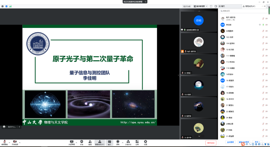 当天下午,冯珑珑教授、俞振华教授、王爽副教授、李佳明副教授为营员们分别以“模拟宇宙”“薛定谔的猫”“万万没想到,2019年诺贝尔奖的背后居然这么多笑料”“原子光子与第二次量子革命”为题带来了四场精彩绝伦的学术报告,使营员们进一步深入了解学院目前的科研进展与学科建设成就,为后续报考我院指明了研究方向。