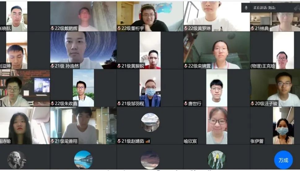 见面会上,学长代表2020级汪子骏、钱思成学长和2021级孙浩然、杨锐祺学长分享他们的学习生活经验。他们不约而同地强调了学习在大学中的重要性,分享了他们的学习方法和学习思维,并向师弟师妹们介绍了校园生活以及课余爱好的培养等内容,对2022级的同学们具有重要的借鉴意义。在线的强基班新生还进行了自我介绍。新生们热情洋溢地介绍了自己。虽然大家来自五湖四海,但是对物理的热爱、对全面发展的追求是彼此相同的底色。