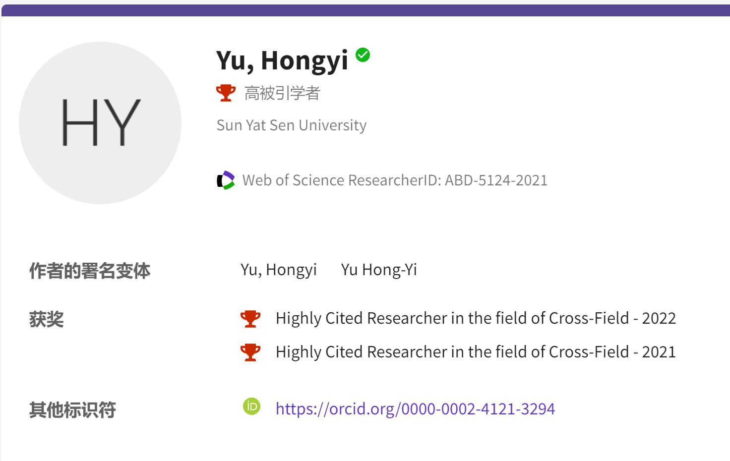我院俞弘毅教授入选2022年全球高被引科学家名单