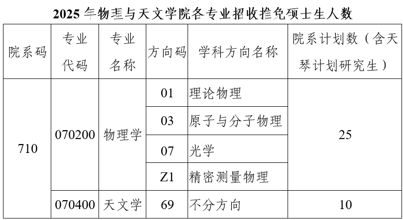 说明:实际招生专业以学校最终公布的2025年研究生招生专业目录为准。各专业实际接收推免生人数将根据招生计划、生源情况等进行调整,以实际录取为准。
